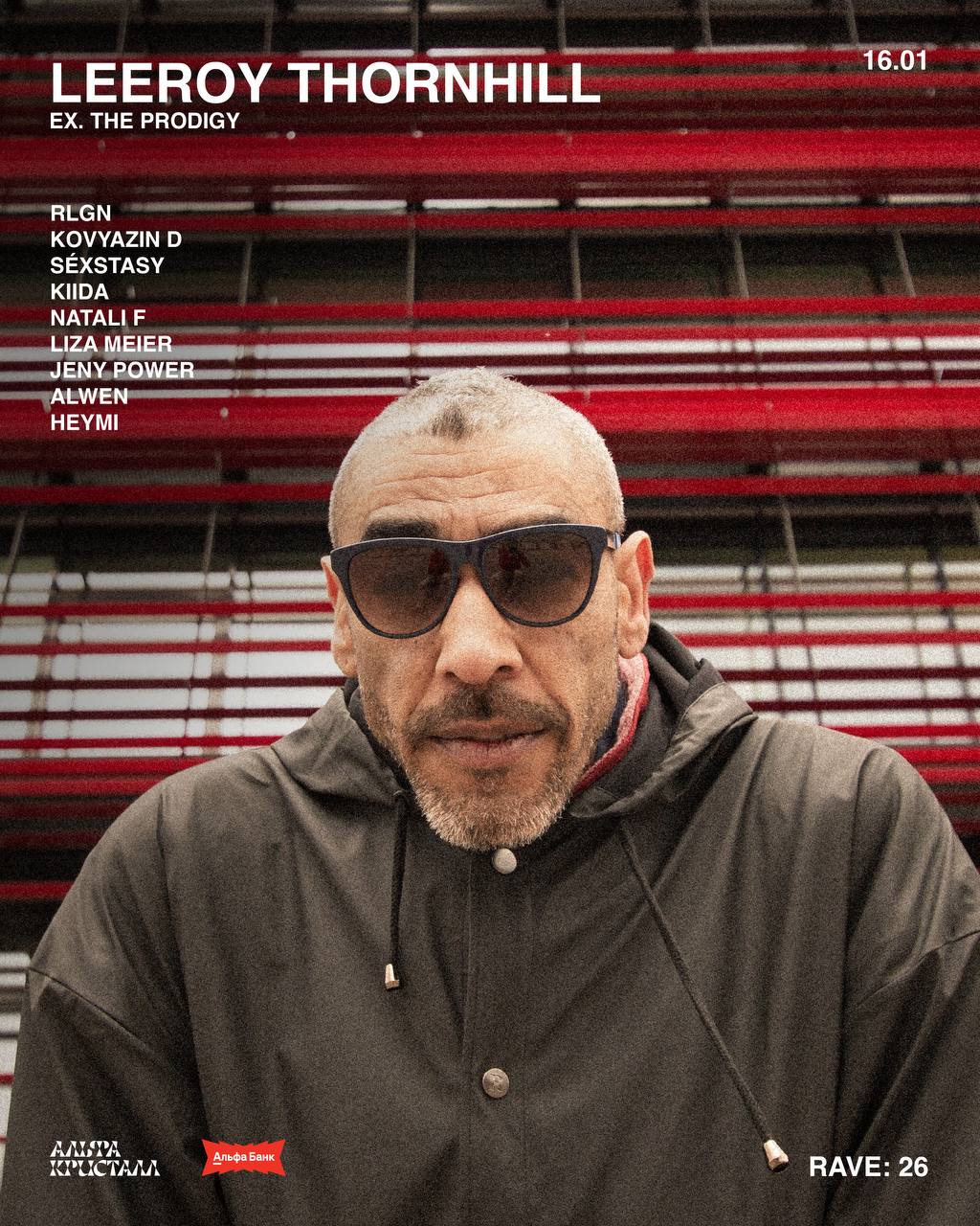 Хедлайнер — DJ Leeroy Thornhill, британский электронный музыкант и DJ, экс-участник «золотого» состава The Prodigy